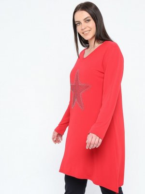 GELİNCE Kırmızı Drop Baskılı Tunik