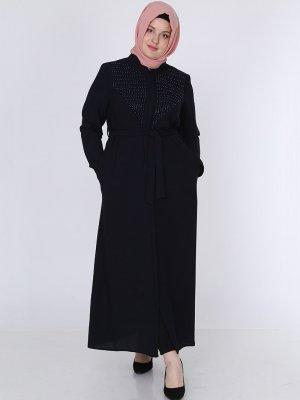 Jamila Lacivert Taşlı İncili Ferace