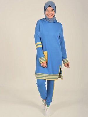 PLİSTRE Saks Mavisi Spor Tunik & Pantolon İkili Takım