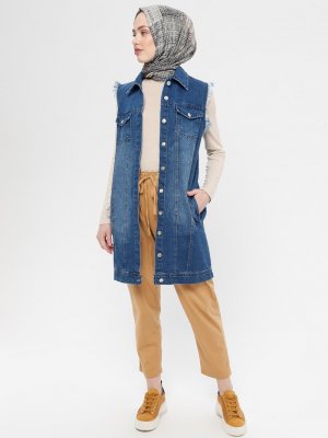 Pink Lady`s Mavi Düğmeli Kot Yelek