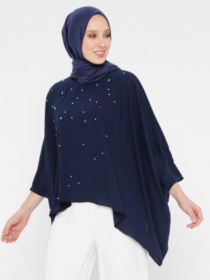 Tuncay Açık Lacivert İncili Panço Bluz