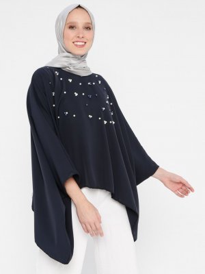 Tuncay Koyu Lacivert İncili Panço Bluz