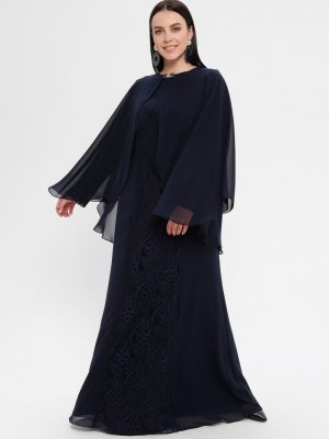 Sevdem Abiye Lacivert Dantelli Abiye Elbise
