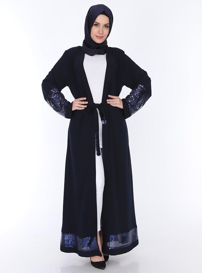 Jamila Lacivert Payet Detaylı Ferace