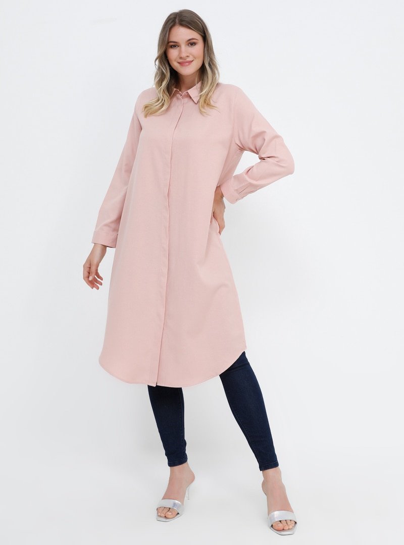 Alia Pudra Doğal Kumaşlı Gizli Düğmeli Tunik