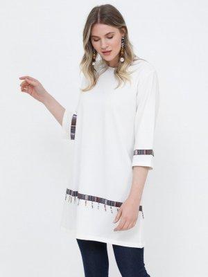 Alia Ekru Doğal Kumaşlı Etnik Detaylı Tunik