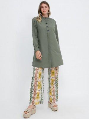 Alia Haki Sarı Doğal Kumaşlı Etnik Desenli Pantolon