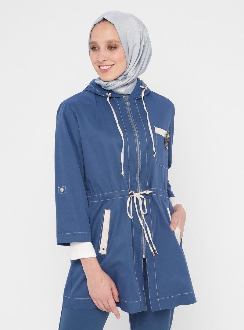 BUTİK VEDAT İndigo Kapüşonlu Trençkot