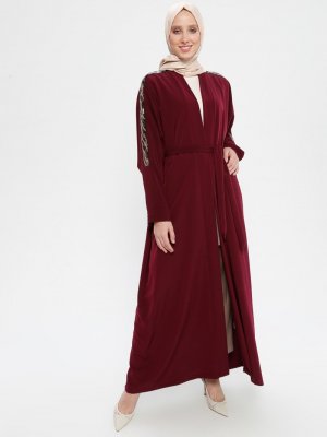 Ginezza Bordo Yarasa Kollu Payet İşlemeli Ferace