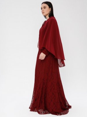 Mileny Bordo Pelerinli Abiye Elbise