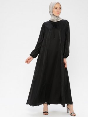 TUĞBA Siyah Boncuk Detaylı Tüllü Elbise