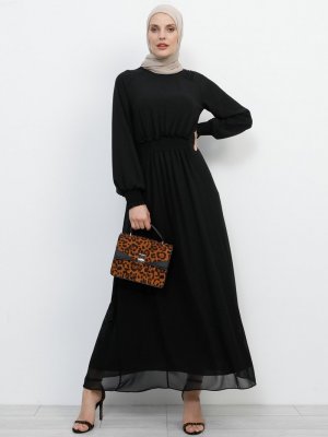 Refka Siyah Gipe Detaylı Şifon Elbise