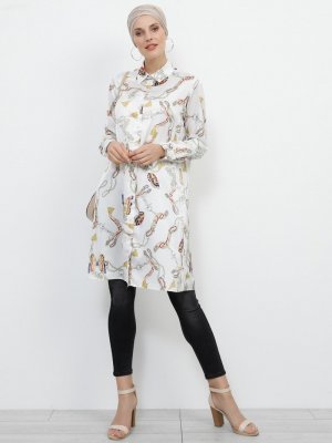Refka Ekru Desenli Tunik