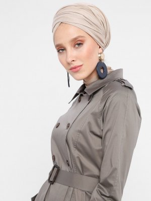 TUĞBA Füme Düğmeli Pardesü