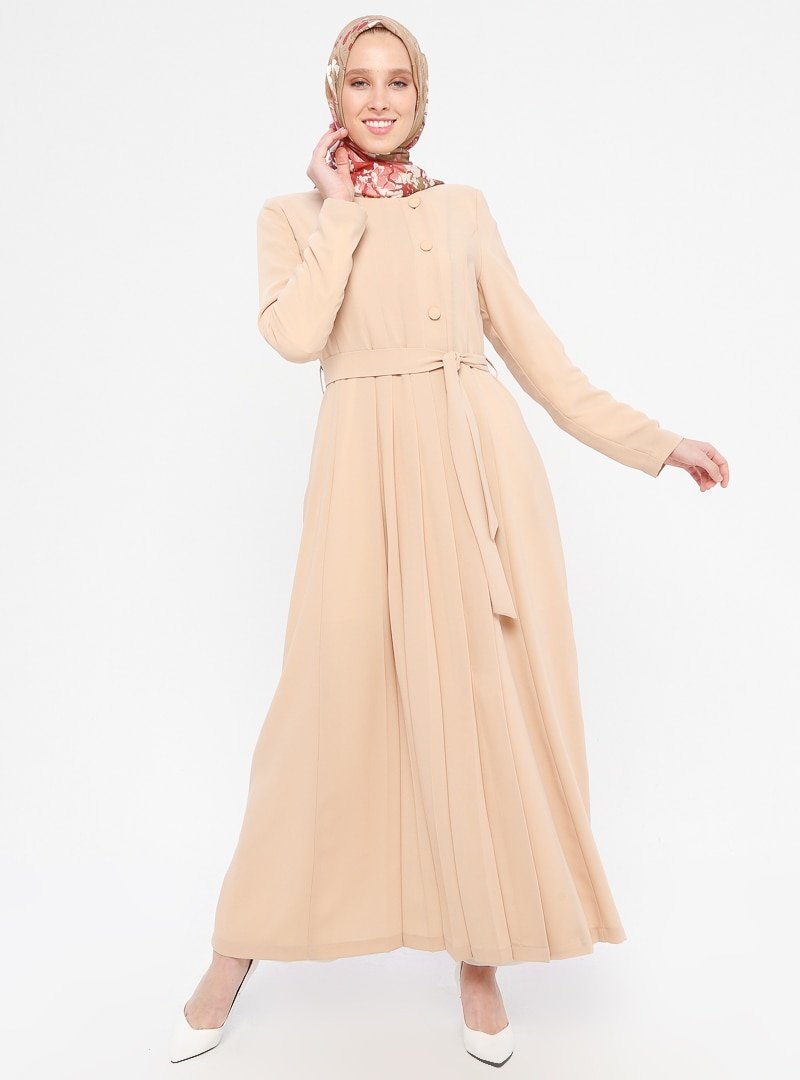 TUĞBA Bej Düğmeli Pardesü