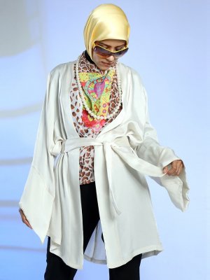 Meryem Acar Krem Kuşaklı Kimono