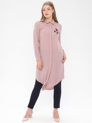 GELİNCE Gül Kurusu Nakışlı Biyeli Tunik