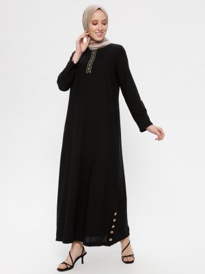 Ginezza Siyah Nakışlı Elbise