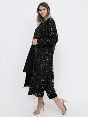 Alia Siyah Dantel Detaylı Abiye Kap