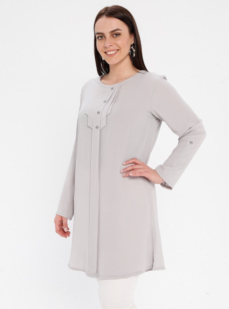 Genç Style Gri Yaka Detaylı Tunik