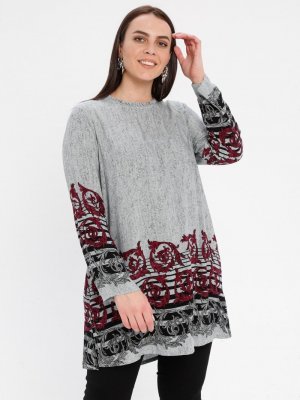 Genç Style Gri Yaka Detaylı Desenli Tunik
