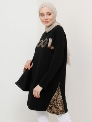 Tavin Siyah Leopar Garnili Baskılı Tunik