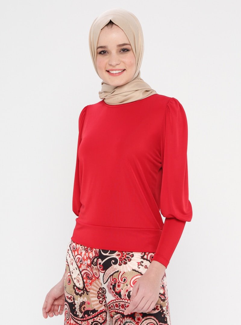 İroni Kırmızı Şifon Bluz