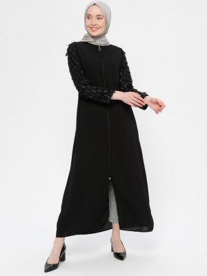 BÜRÜN Siyah Yaprak Detaylı Pardesü