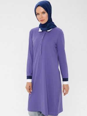 Allday Mor Düğme Detaylı Tunik