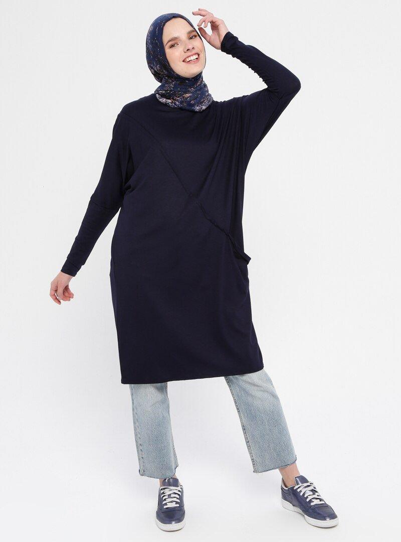 Sportify Lacivert Tek Cepli Spor Tunik