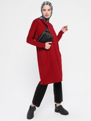 Sportify Bordo Tek Cepli Spor Tunik