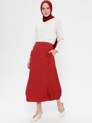 TUĞBA Bordo Bağcık Detaylı Etek