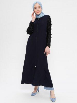 BÜRÜN Lacivert Yaprak Detaylı Pardesü