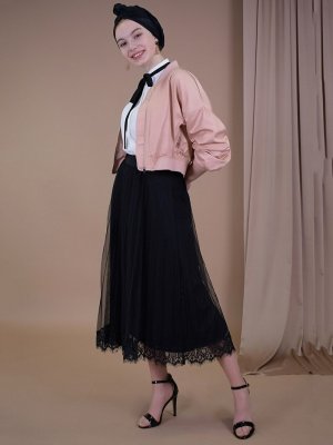 Sew&Design Siyah Dantelli Tül Pilisoley Etek