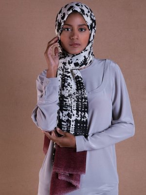 Akel Bordo Krem Kesik File Şal