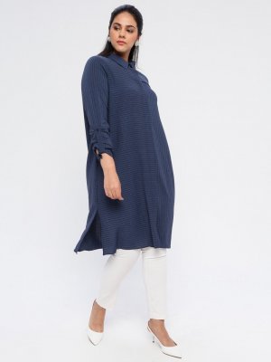 TUĞBA İndigo Gizli Düğmeli Çizgili Tunik