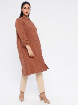 TUĞBA Tarçın Gizli Düğmeli Çizgili Tunik