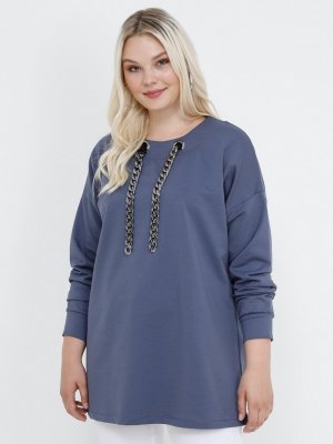 Alia Menekşe Doğal Kumaşlı Yakası Zincir Detaylı Bluz