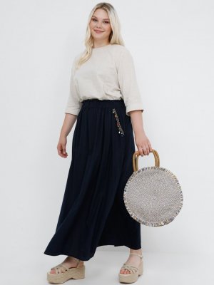 Alia Lacivert Doğal Kumaşlı Cepleri Boncuk İşlemeli Etek