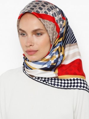 Bonjela Karışık Renkli Desenli Twill Eşarp