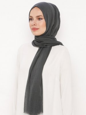 Soft Scarfs Koyu Gri İpek Dokunuşlu Şantug Şal