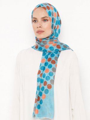 Soft Scarfs Turkuaz Puan Desenli Krep Şal