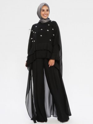 Lâl By Hilal Siyah Zarif Pelerinli Tulum Abiye Elbise