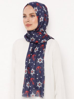 Soft Scarfs Lacivert Çapalı Krep Şal