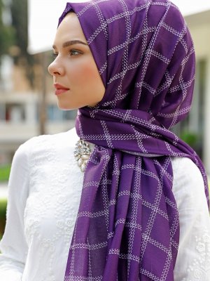 Şal Evi Mor Kareli Şal