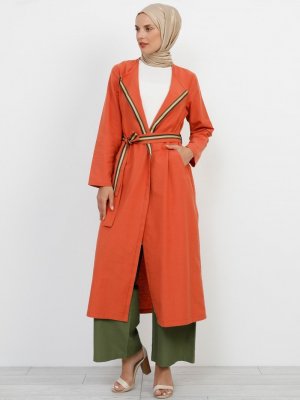 Refka Tarçın Doğal Kumaşlı Şerit Detaylı Trençkot