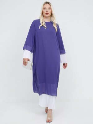 Alia Leylak Beyaz Pilise Detaylı Abiye Elbise