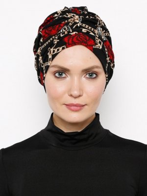 Vera Bone Siyah Efruz Pileli Hazır Türban