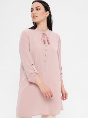 Genç Style Pudra Yaka Detaylı Tunik