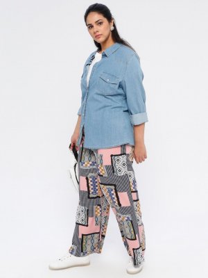 Genç Style Pembe Desenli Bol Paça Pantolon